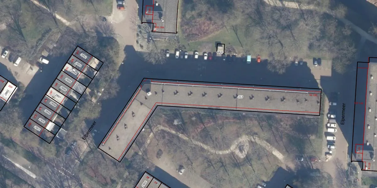 Het perceel waarop Elpermeer 133 staat heeft een oppervlakte van 1850 m². Dit is een zeer groot perceel. De perceeloppervlakte wordt geregistreerd door het Kadaster. Gedetailleerde informatie over de maten van dit perceel kunt u vinden in het rapport Kadastrale kaart met maatvoering van Elpermeer 133.