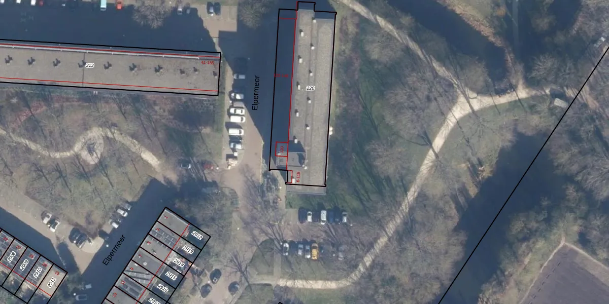 Het perceel waarop Elpermeer 18 staat heeft een oppervlakte van 1049 m². Dit is een zeer groot perceel. De perceeloppervlakte wordt geregistreerd door het Kadaster. Gedetailleerde informatie over de maten van dit perceel kunt u vinden in het rapport Kadastrale kaart met maatvoering van Elpermeer 18.