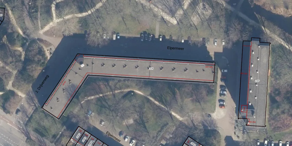 Het perceel waarop Elpermeer 265 staat heeft een oppervlakte van 1850 m². Dit is een zeer groot perceel. De perceeloppervlakte wordt geregistreerd door het Kadaster. Gedetailleerde informatie over de maten van dit perceel kunt u vinden in het rapport Kadastrale kaart met maatvoering van Elpermeer 265.