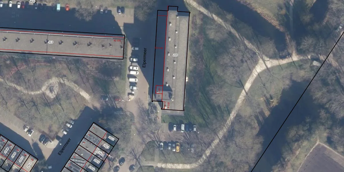 Het perceel waarop Elpermeer 28 staat heeft een oppervlakte van 1049 m². Dit is een zeer groot perceel. De perceeloppervlakte wordt geregistreerd door het Kadaster. Gedetailleerde informatie over de maten van dit perceel kunt u vinden in het rapport Kadastrale kaart met maatvoering van Elpermeer 28.