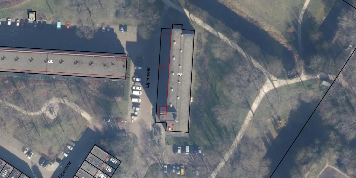 Het perceel waarop Elpermeer 58 staat heeft een oppervlakte van 1049 m². Dit is een zeer groot perceel. De perceeloppervlakte wordt geregistreerd door het Kadaster. Gedetailleerde informatie over de maten van dit perceel kunt u vinden in het rapport Kadastrale kaart met maatvoering van Elpermeer 58.