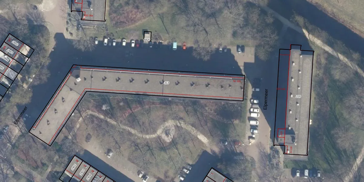 Het perceel waarop Elpermeer 69 staat heeft een oppervlakte van 1850 m². Dit is een zeer groot perceel. De perceeloppervlakte wordt geregistreerd door het Kadaster. Gedetailleerde informatie over de maten van dit perceel kunt u vinden in het rapport Kadastrale kaart met maatvoering van Elpermeer 69.
