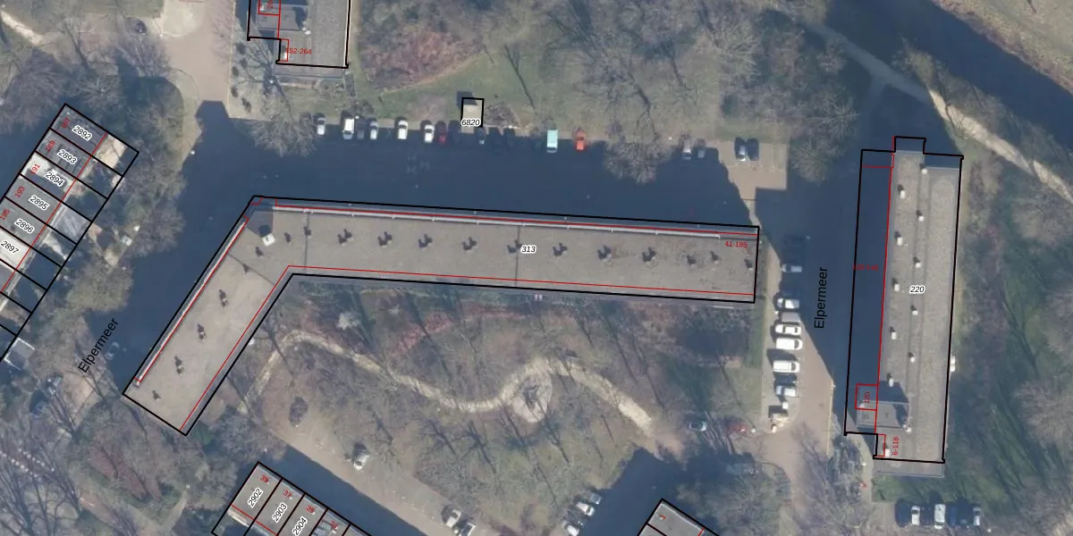 Het perceel waarop Elpermeer 75 staat heeft een oppervlakte van 1850 m². Dit is een zeer groot perceel. De perceeloppervlakte wordt geregistreerd door het Kadaster. Gedetailleerde informatie over de maten van dit perceel kunt u vinden in het rapport Kadastrale kaart met maatvoering van Elpermeer 75.