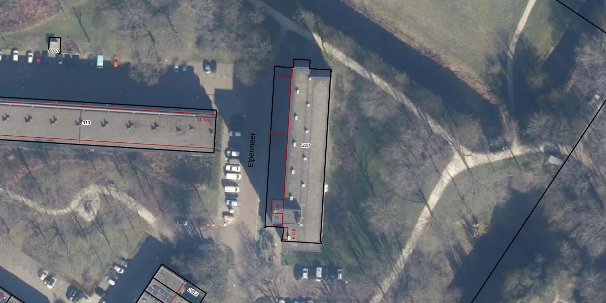 Het perceel waarop Elpermeer 76 staat heeft een oppervlakte van 1049 m². Dit is een zeer groot perceel. De perceeloppervlakte wordt geregistreerd door het Kadaster. Gedetailleerde informatie over de maten van dit perceel kunt u vinden in het rapport Kadastrale kaart met maatvoering van Elpermeer 76.