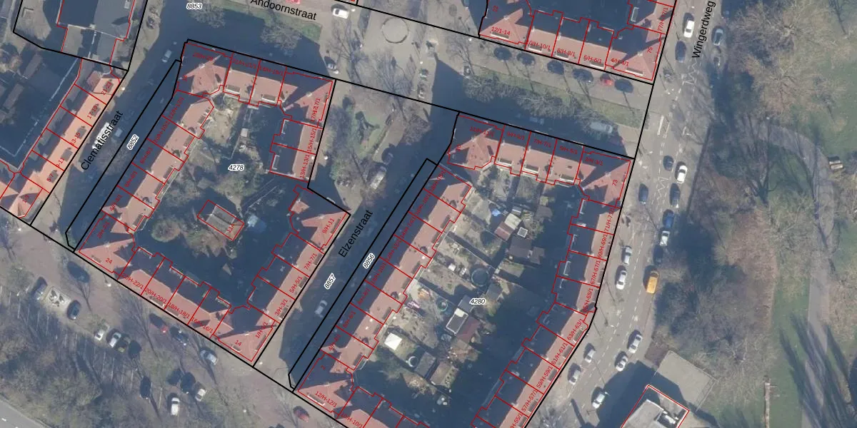 Het perceel waarop Elzenstraat 16-1 staat heeft een oppervlakte van 4003 m². Dit is een zeer groot perceel. De perceeloppervlakte wordt geregistreerd door het Kadaster. Gedetailleerde informatie over de maten van dit perceel kunt u vinden in het rapport Kadastrale kaart met maatvoering van Elzenstraat 16-1.