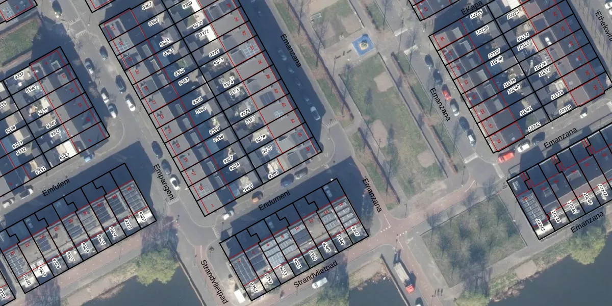 Gebruik de zoekbalk of klik op een perceel voor informatie over de adressen binnen dit perceel.