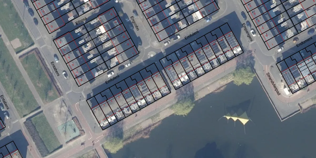 Gebruik de zoekbalk of klik op een perceel voor informatie over de adressen binnen dit perceel.