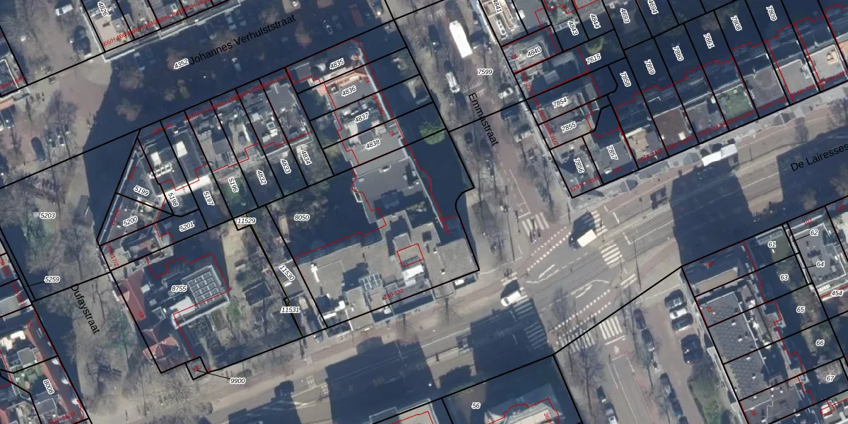 Emmastraat 30 is gelegen op kadastraal perceel ASD17U8050. Deze kadastrale aanduiding is uniek en wordt gebruikt door het Kadaster om eigendomsrechten en andere zakelijke rechten vast te leggen. Het perceel maakt onderdeel uit van de kadastrale gemeente Amsterdam.