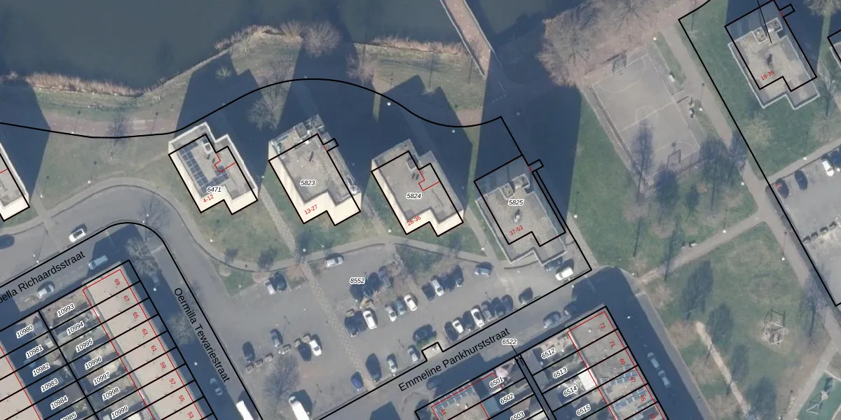 Emmeline Pankhurststraat 36 is gelegen op kadastraal perceel WPK02L5824. Deze kadastrale aanduiding is uniek en wordt gebruikt door het Kadaster om eigendomsrechten en andere zakelijke rechten vast te leggen. Het perceel maakt onderdeel uit van de kadastrale gemeente Weesperkarspel.