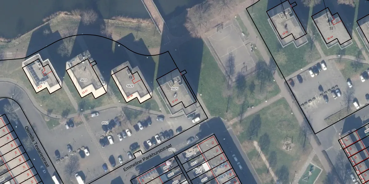 Emmeline Pankhurststraat 45 is gelegen op kadastraal perceel WPK02L5825. Deze kadastrale aanduiding is uniek en wordt gebruikt door het Kadaster om eigendomsrechten en andere zakelijke rechten vast te leggen. Het perceel maakt onderdeel uit van de kadastrale gemeente Weesperkarspel.