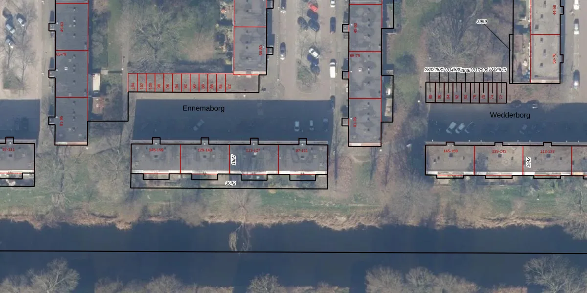 Het perceel waarop Ennemaborg 105 staat heeft een oppervlakte van 771 m². Dit is een groot perceel. De perceeloppervlakte wordt geregistreerd door het Kadaster. Gedetailleerde informatie over de maten van dit perceel kunt u vinden in het rapport Kadastrale kaart met maatvoering van Ennemaborg 105.