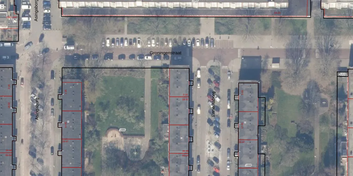 Het perceel waarop Ennemaborg 12 staat heeft een oppervlakte van 6642 m². Dit is een zeer groot perceel. De perceeloppervlakte wordt geregistreerd door het Kadaster. Gedetailleerde informatie over de maten van dit perceel kunt u vinden in het rapport Kadastrale kaart met maatvoering van Ennemaborg 12.