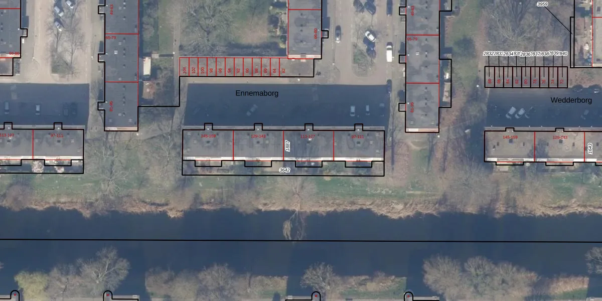 Het perceel waarop Ennemaborg 125 staat heeft een oppervlakte van 771 m². Dit is een groot perceel. De perceeloppervlakte wordt geregistreerd door het Kadaster. Gedetailleerde informatie over de maten van dit perceel kunt u vinden in het rapport Kadastrale kaart met maatvoering van Ennemaborg 125.
