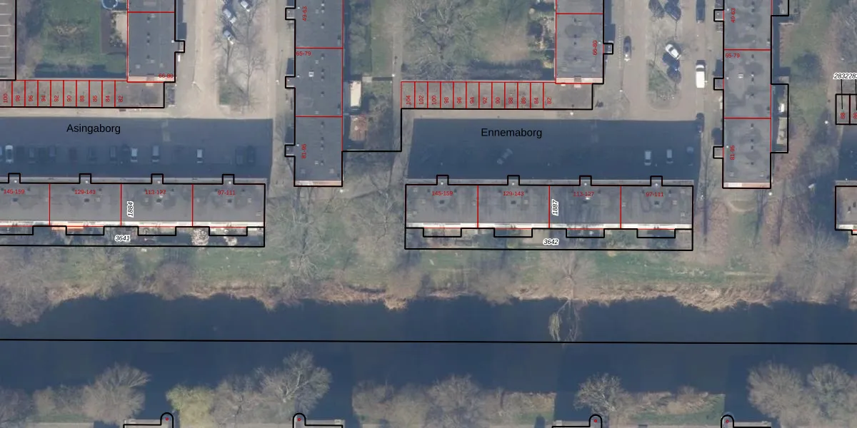 Het perceel waarop Ennemaborg 157 staat heeft een oppervlakte van 771 m². Dit is een groot perceel. De perceeloppervlakte wordt geregistreerd door het Kadaster. Gedetailleerde informatie over de maten van dit perceel kunt u vinden in het rapport Kadastrale kaart met maatvoering van Ennemaborg 157.
