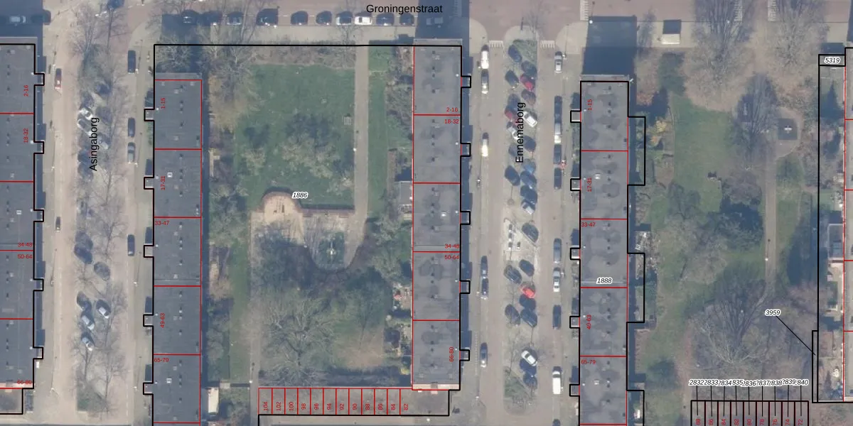 Het perceel waarop Ennemaborg 40 staat heeft een oppervlakte van 6642 m². Dit is een zeer groot perceel. De perceeloppervlakte wordt geregistreerd door het Kadaster. Gedetailleerde informatie over de maten van dit perceel kunt u vinden in het rapport Kadastrale kaart met maatvoering van Ennemaborg 40.