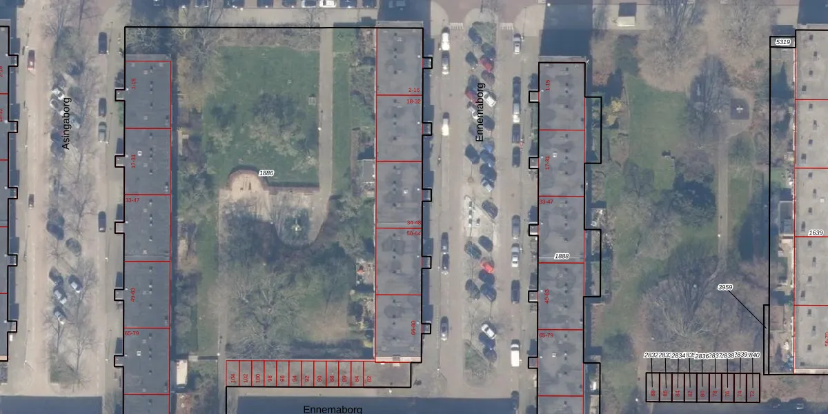 Het perceel waarop Ennemaborg 42 staat heeft een oppervlakte van 6642 m². Dit is een zeer groot perceel. De perceeloppervlakte wordt geregistreerd door het Kadaster. Gedetailleerde informatie over de maten van dit perceel kunt u vinden in het rapport Kadastrale kaart met maatvoering van Ennemaborg 42.