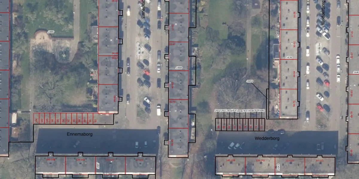 Het perceel waarop Ennemaborg 57 staat heeft een oppervlakte van 1310 m². Dit is een zeer groot perceel. De perceeloppervlakte wordt geregistreerd door het Kadaster. Gedetailleerde informatie over de maten van dit perceel kunt u vinden in het rapport Kadastrale kaart met maatvoering van Ennemaborg 57.