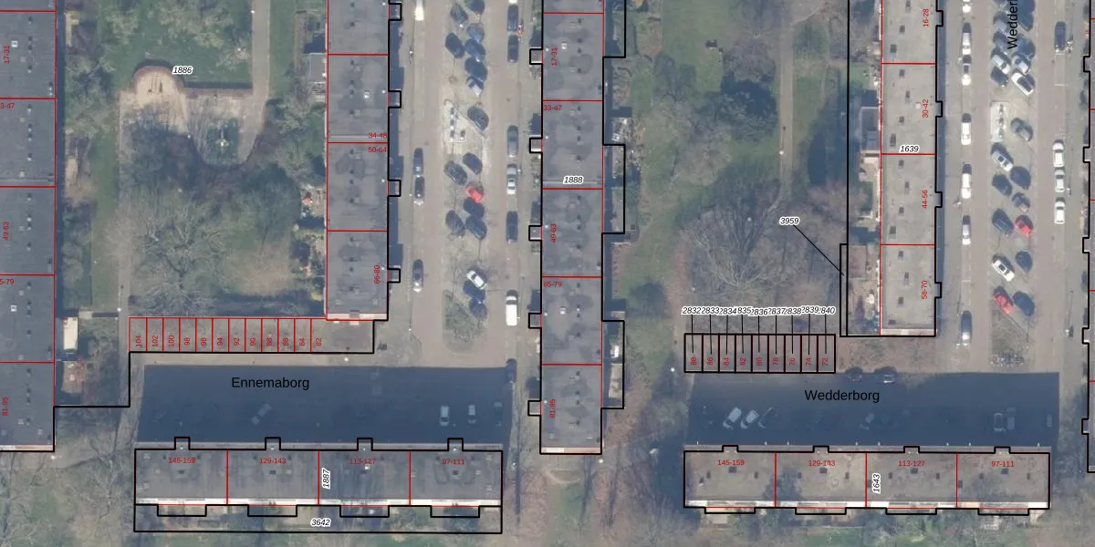 Het perceel waarop Ennemaborg 63 staat heeft een oppervlakte van 1310 m². Dit is een zeer groot perceel. De perceeloppervlakte wordt geregistreerd door het Kadaster. Gedetailleerde informatie over de maten van dit perceel kunt u vinden in het rapport Kadastrale kaart met maatvoering van Ennemaborg 63.