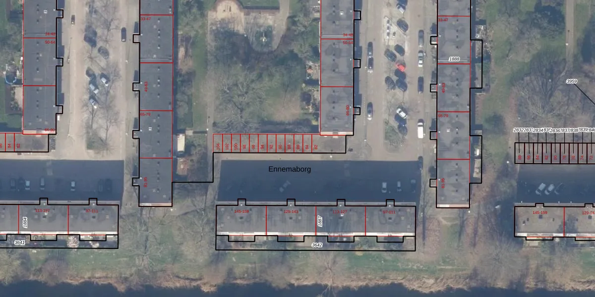 Het perceel waarop Ennemaborg 86 staat heeft een oppervlakte van 6642 m². Dit is een zeer groot perceel. De perceeloppervlakte wordt geregistreerd door het Kadaster. Gedetailleerde informatie over de maten van dit perceel kunt u vinden in het rapport Kadastrale kaart met maatvoering van Ennemaborg 86.