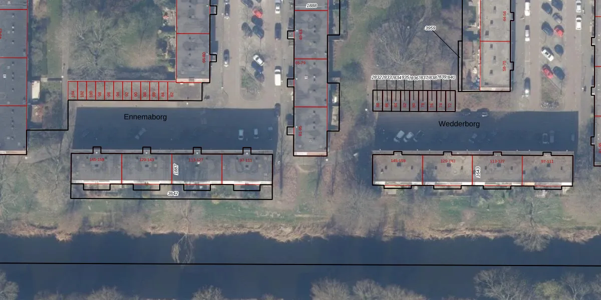 Het perceel waarop Ennemaborg 95 staat heeft een oppervlakte van 1310 m². Dit is een zeer groot perceel. De perceeloppervlakte wordt geregistreerd door het Kadaster. Gedetailleerde informatie over de maten van dit perceel kunt u vinden in het rapport Kadastrale kaart met maatvoering van Ennemaborg 95.