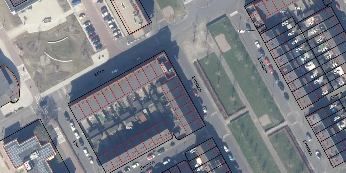Het perceel waarop Entabeni 6 staat heeft een oppervlakte van 3019 m². Dit is een zeer groot perceel. De perceeloppervlakte wordt geregistreerd door het Kadaster. Gedetailleerde informatie over de maten van dit perceel kunt u vinden in het rapport Kadastrale kaart met maatvoering van Entabeni 6.