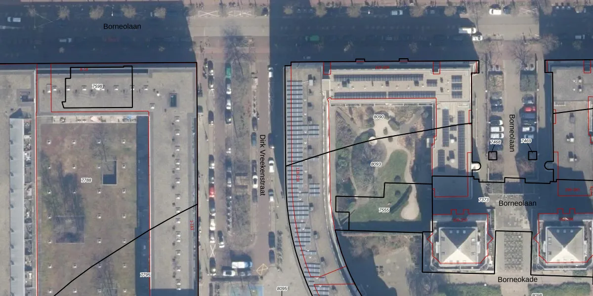 Het perceel waarop het adres ligt is ASD02-A-8090. De afkorting 'ASD02' staat voor kadastrale gemeente Amsterdam. Het perceel is 1705 m² groot. Dat is kleiner dan de gemiddelde perceeloppervlakte in Amsterdam, dat op 2763,93 m² ligt. De grootste perceeloppervlakte in de kadastrale gemeente is 14,3 ha. De kleinste oppervlakte bedraagt 0 m². Op het perceel zijn 79 adressen aanwezig. De laatste wijziging in het de Basisregistratie Kadaster (BRK) was op 11-01-2012.