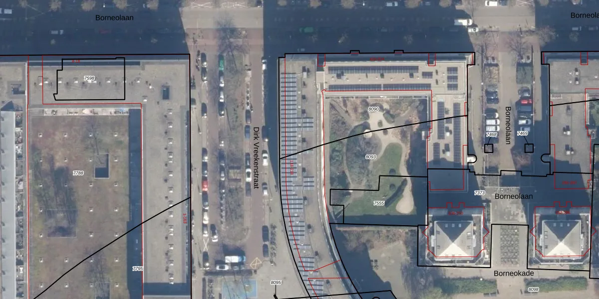 Het perceel waarop het adres ligt is ASD02-A-8090. De afkorting 'ASD02' staat voor kadastrale gemeente Amsterdam. Het perceel is 1705 m² groot. Dat is kleiner dan de gemiddelde perceeloppervlakte in Amsterdam, dat op 2763,93 m² ligt. De grootste perceeloppervlakte in de kadastrale gemeente is 14,3 ha. De kleinste oppervlakte bedraagt 0 m². Op het perceel zijn 79 adressen aanwezig. De huidige grenzen van het perceel zijn digitaal in de Basisregistratie Kadaster (BRK) geregistreerd op 11-01-2012.
