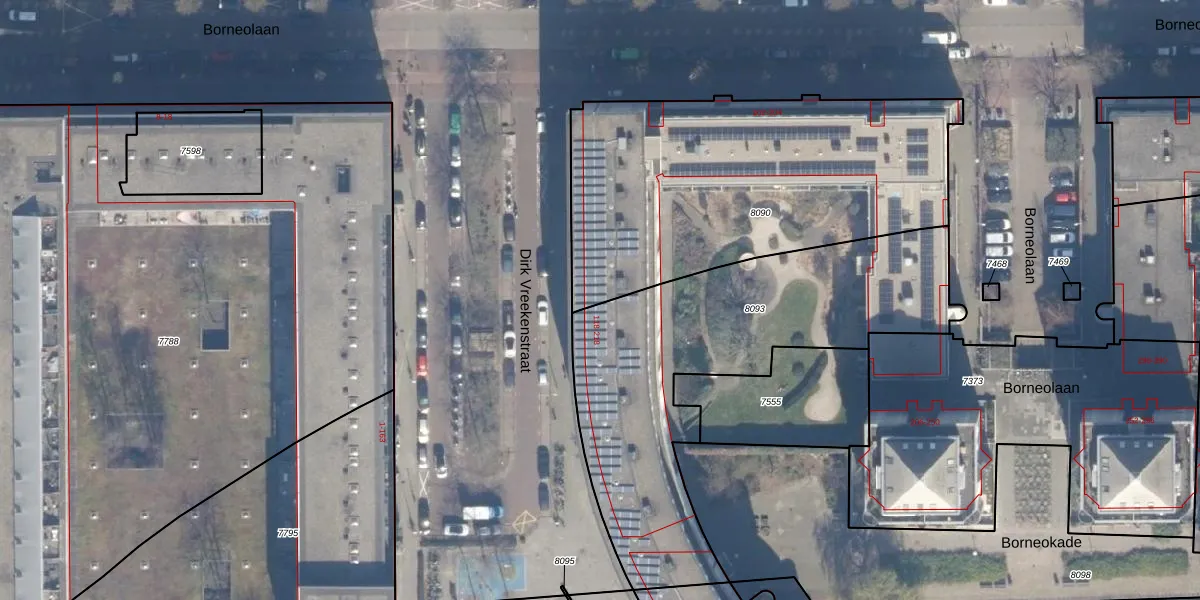 Het perceel waarop het adres ligt is ASD02-A-8090. De afkorting 'ASD02' staat voor kadastrale gemeente Amsterdam. Het perceel is 1705 m² groot. Dat is kleiner dan de gemiddelde perceeloppervlakte in Amsterdam, dat op 2763,93 m² ligt. De grootste perceeloppervlakte in de kadastrale gemeente is 14,3 ha. De kleinste oppervlakte bedraagt 0 m². Op het perceel zijn 79 adressen aanwezig. De laatste wijziging in het de Basisregistratie Kadaster (BRK) was op 11-01-2012.