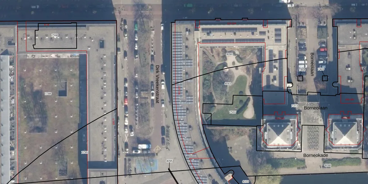Het perceel waarop het adres ligt is ASD02-A-8093. De afkorting 'ASD02' staat voor kadastrale gemeente Amsterdam. Het perceel is 1608 m² groot. Dat is kleiner dan de gemiddelde perceeloppervlakte in Amsterdam, dat op 2763,93 m² ligt. De grootste perceeloppervlakte in de kadastrale gemeente is 14,3 ha. De kleinste oppervlakte bedraagt 0 m². Op het perceel zijn 72 adressen aanwezig. De huidige grenzen van het perceel zijn digitaal in de Basisregistratie Kadaster (BRK) geregistreerd op 23-11-2005.