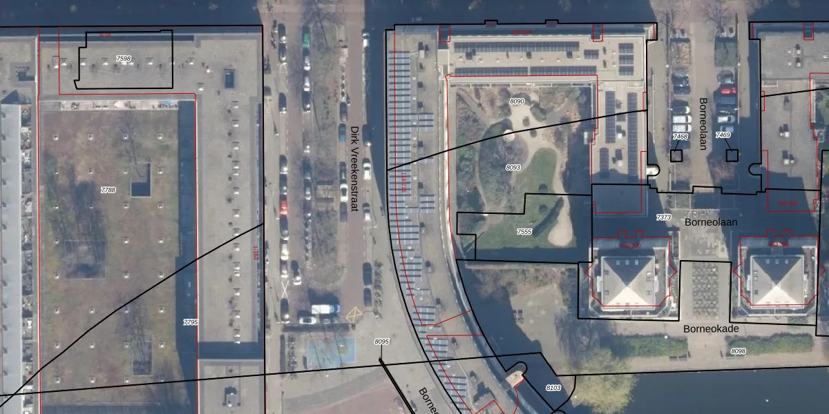 Het perceel waarop het adres ligt is ASD02-A-8093. De afkorting 'ASD02' staat voor kadastrale gemeente Amsterdam. Het perceel is 1608 m² groot. Dat is kleiner dan de gemiddelde perceeloppervlakte in Amsterdam, dat op 2763,93 m² ligt. De grootste perceeloppervlakte in de kadastrale gemeente is 14,3 ha. De kleinste oppervlakte bedraagt 0 m². Op het perceel liggen in totaal 72 adressen. De huidige grenzen van het perceel zijn digitaal in de Basisregistratie Kadaster (BRK) geregistreerd op 23-11-2005.
