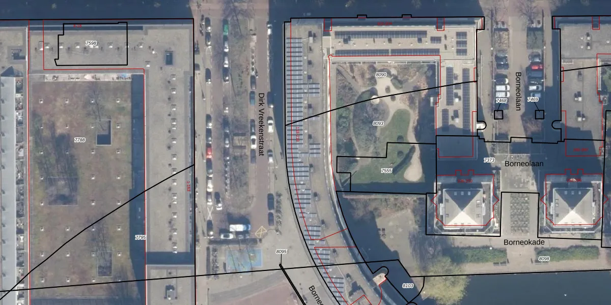 Het perceel waarop het adres ligt is ASD02-A-8093. De afkorting 'ASD02' staat voor kadastrale gemeente Amsterdam. Het perceel is 1608 m² groot. Dat is kleiner dan de gemiddelde perceeloppervlakte in Amsterdam, dat op 2763,93 m² ligt. De grootste perceeloppervlakte in de kadastrale gemeente is 14,3 ha. De kleinste oppervlakte bedraagt 0 m². Op het perceel zijn 72 adressen aanwezig. De laatste wijziging in het de Basisregistratie Kadaster (BRK) was op 23-11-2005.