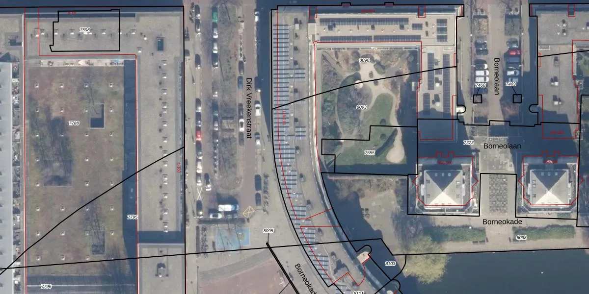 Het perceel waarop het adres ligt is ASD02-A-8093. De afkorting 'ASD02' staat voor kadastrale gemeente Amsterdam. Het perceel is 1608 m² groot. Dat is kleiner dan de gemiddelde perceeloppervlakte in Amsterdam, dat op 2763,93 m² ligt. De grootste perceeloppervlakte in de kadastrale gemeente is 14,3 ha. De kleinste oppervlakte bedraagt 0 m². Op het perceel liggen in totaal 72 adressen. De huidige grenzen van het perceel zijn digitaal in de Basisregistratie Kadaster (BRK) geregistreerd op 23-11-2005.