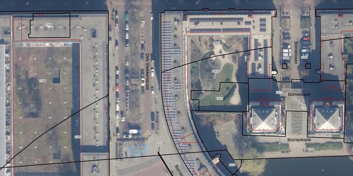 Het perceel waarop het adres ligt is ASD02-A-8093. De afkorting 'ASD02' staat voor kadastrale gemeente Amsterdam. Het perceel is 1608 m² groot. Dat is kleiner dan de gemiddelde perceeloppervlakte in Amsterdam, dat op 2767,13 m² ligt. De grootste perceeloppervlakte in de kadastrale gemeente is 14,3 ha. De kleinste oppervlakte bedraagt 0 m². Op het perceel liggen in totaal 72 adressen. De huidige grenzen van het perceel zijn digitaal in de Basisregistratie Kadaster (BRK) geregistreerd op 23-11-2005.
