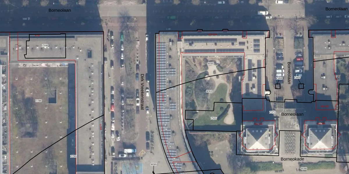 Het perceel waarop het adres ligt is ASD02-A-8093. De afkorting 'ASD02' staat voor kadastrale gemeente Amsterdam. Het perceel is 1608 m² groot. Dat is kleiner dan de gemiddelde perceeloppervlakte in Amsterdam, dat op 2767,13 m² ligt. De grootste perceeloppervlakte in de kadastrale gemeente is 14,3 ha. De kleinste oppervlakte bedraagt 0 m². Er zijn 72 adressen aanwezig op het perceel. In de Basisregistratie Kadaster (BRK) werden de grenzen van het perceel geregistreerd op 23-11-2005.