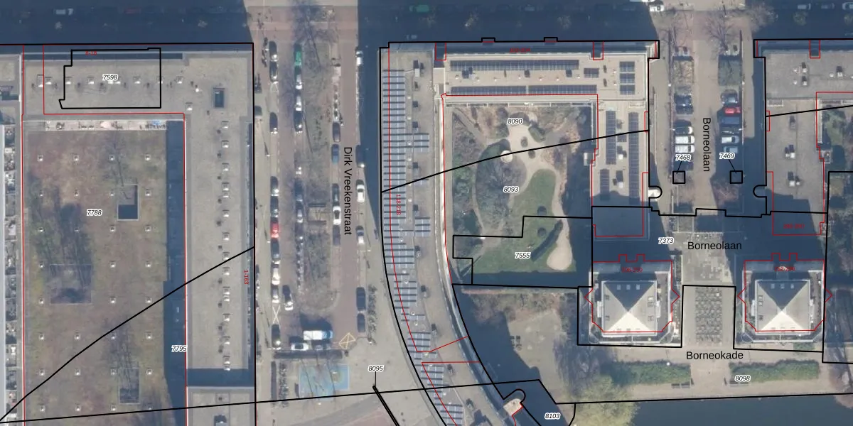 Het perceel waarop het adres ligt is ASD02-A-8093. De afkorting 'ASD02' staat voor kadastrale gemeente Amsterdam. Het perceel is 1608 m² groot. Dat is kleiner dan de gemiddelde perceeloppervlakte in Amsterdam, dat op 2763,93 m² ligt. De grootste perceeloppervlakte in de kadastrale gemeente is 14,3 ha. De kleinste oppervlakte bedraagt 0 m². Op het perceel zijn 72 adressen aanwezig. De huidige grenzen van het perceel zijn digitaal in de Basisregistratie Kadaster (BRK) geregistreerd op 23-11-2005.