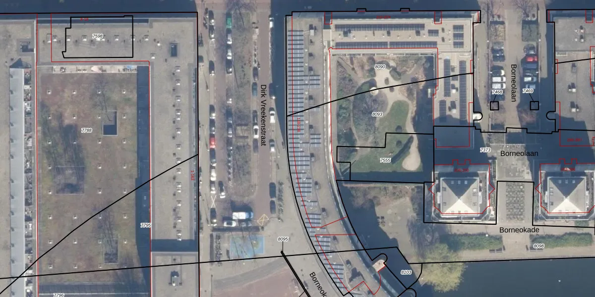 Het perceel waarop het adres ligt is ASD02-A-8093. De afkorting 'ASD02' staat voor kadastrale gemeente Amsterdam. Het perceel is 1608 m² groot. Dat is kleiner dan de gemiddelde perceeloppervlakte in Amsterdam, dat op 2767,13 m² ligt. De grootste perceeloppervlakte in de kadastrale gemeente is 14,3 ha. De kleinste oppervlakte bedraagt 0 m². Op het perceel liggen in totaal 72 adressen. In de Basisregistratie Kadaster (BRK) werden de grenzen van het perceel geregistreerd op 23-11-2005.