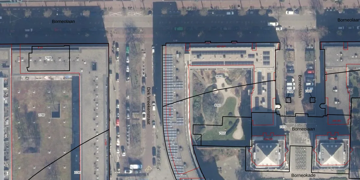 Het perceel waarop het adres ligt is ASD02-A-8090. De afkorting 'ASD02' staat voor kadastrale gemeente Amsterdam. Het perceel is 1705 m² groot. Dat is kleiner dan de gemiddelde perceeloppervlakte in Amsterdam, dat op 2767,13 m² ligt. De grootste perceeloppervlakte in de kadastrale gemeente is 14,3 ha. De kleinste oppervlakte bedraagt 0 m². Op het perceel liggen in totaal 79 adressen. De laatste wijziging in het de Basisregistratie Kadaster (BRK) was op 11-01-2012.
