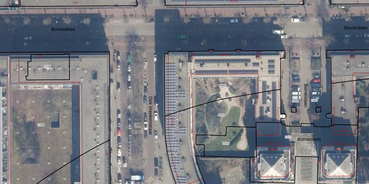 Het perceel waarop het adres ligt is ASD02-A-8090. De afkorting 'ASD02' staat voor kadastrale gemeente Amsterdam. Het perceel is 1705 m² groot. Dat is kleiner dan de gemiddelde perceeloppervlakte in Amsterdam, dat op 2763,93 m² ligt. De grootste perceeloppervlakte in de kadastrale gemeente is 14,3 ha. De kleinste oppervlakte bedraagt 0 m². Op het perceel liggen in totaal 79 adressen. De laatste wijziging in het de Basisregistratie Kadaster (BRK) was op 11-01-2012.