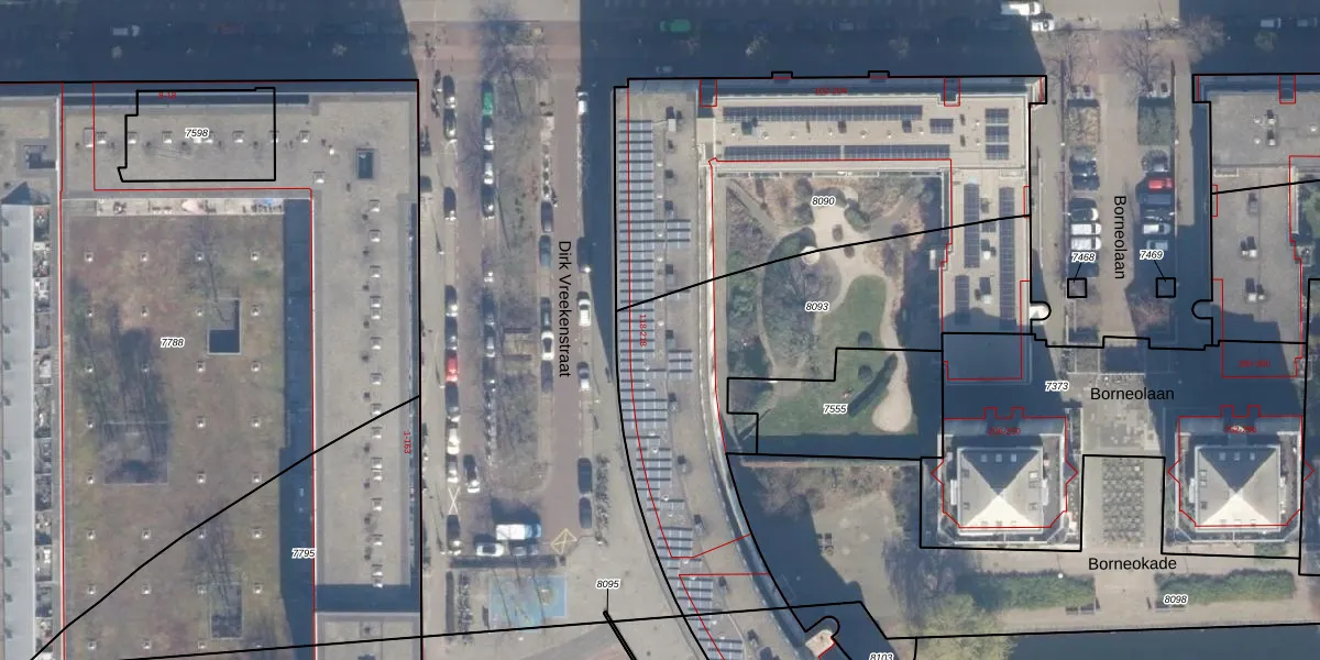 Het perceel waarop het adres ligt is ASD02-A-8093. De afkorting 'ASD02' staat voor kadastrale gemeente Amsterdam. Het perceel is 1608 m² groot. Dat is kleiner dan de gemiddelde perceeloppervlakte in Amsterdam, dat op 2763,93 m² ligt. Het grootste perceel in de kadastrale gemeente is 14,3 ha. Het kleinste perceel heeft een oppervlakte van 0 m². Op het perceel liggen in totaal 72 adressen. De laatste wijziging in het de Basisregistratie Kadaster (BRK) was op 23-11-2005.