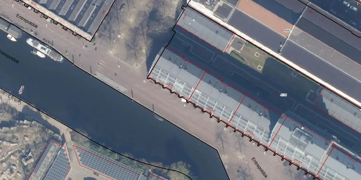 Het perceel waarop Entrepotdok 124 staat heeft een oppervlakte van 5978 m². Dit is een zeer groot perceel. De perceeloppervlakte wordt geregistreerd door het Kadaster. Gedetailleerde informatie over de maten van dit perceel kunt u vinden in het rapport Kadastrale kaart met maatvoering van Entrepotdok 124.