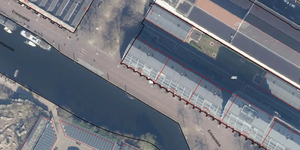 Het perceel waarop Entrepotdok 125 staat heeft een oppervlakte van 5978 m². Dit is een zeer groot perceel. De perceeloppervlakte wordt geregistreerd door het Kadaster. Gedetailleerde informatie over de maten van dit perceel kunt u vinden in het rapport Kadastrale kaart met maatvoering van Entrepotdok 125.