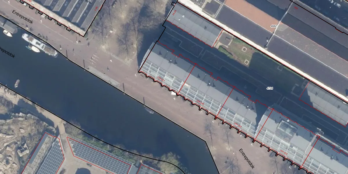 Het perceel waarop Entrepotdok 126 staat heeft een oppervlakte van 5978 m². Dit is een zeer groot perceel. De perceeloppervlakte wordt geregistreerd door het Kadaster. Gedetailleerde informatie over de maten van dit perceel kunt u vinden in het rapport Kadastrale kaart met maatvoering van Entrepotdok 126.