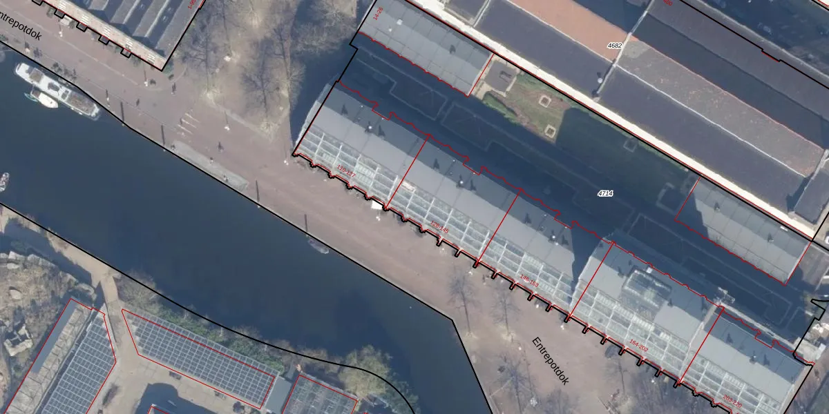 Het perceel waarop Entrepotdok 131 staat heeft een oppervlakte van 5978 m². Dit is een zeer groot perceel. De perceeloppervlakte wordt geregistreerd door het Kadaster. Gedetailleerde informatie over de maten van dit perceel kunt u vinden in het rapport Kadastrale kaart met maatvoering van Entrepotdok 131.