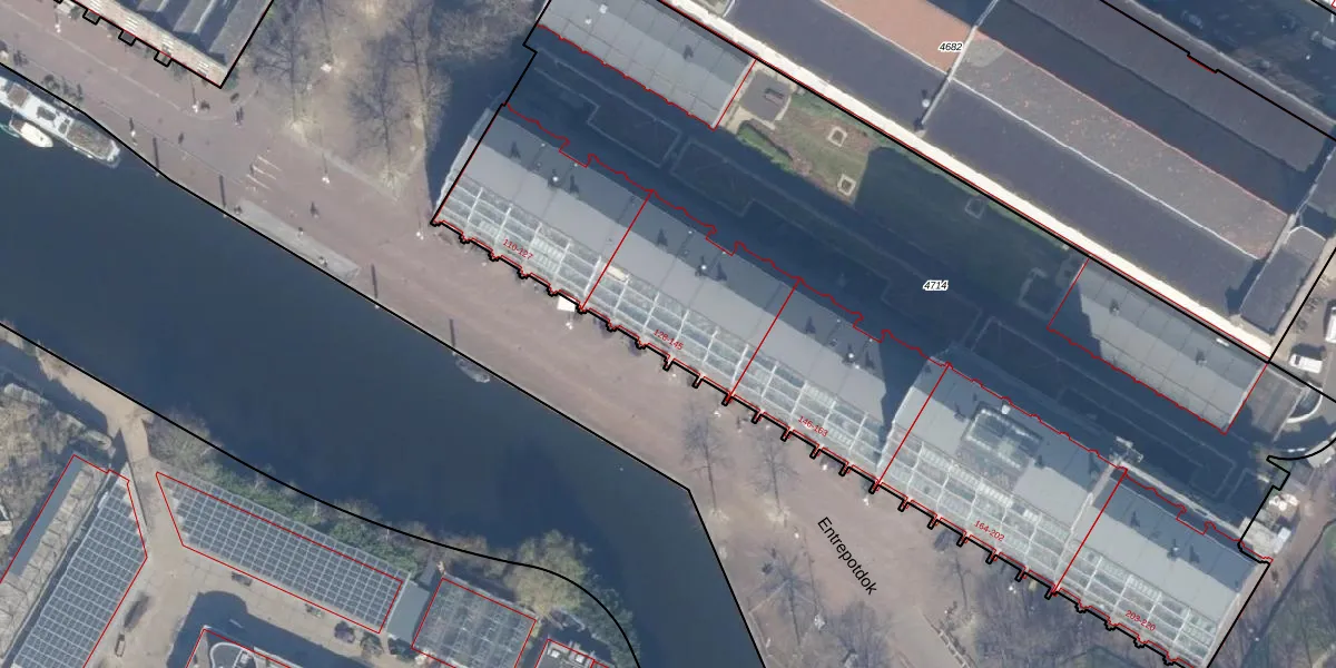 Het perceel waarop Entrepotdok 137 staat heeft een oppervlakte van 5978 m². Dit is een zeer groot perceel. De perceeloppervlakte wordt geregistreerd door het Kadaster. Gedetailleerde informatie over de maten van dit perceel kunt u vinden in het rapport Kadastrale kaart met maatvoering van Entrepotdok 137.