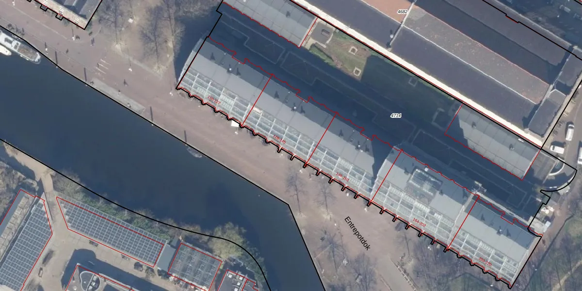 Het perceel waarop Entrepotdok 141 staat heeft een oppervlakte van 5978 m². Dit is een zeer groot perceel. De perceeloppervlakte wordt geregistreerd door het Kadaster. Gedetailleerde informatie over de maten van dit perceel kunt u vinden in het rapport Kadastrale kaart met maatvoering van Entrepotdok 141.