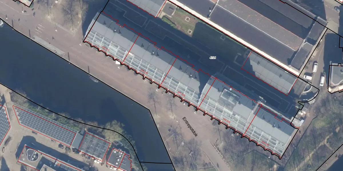 Het perceel waarop Entrepotdok 149 staat heeft een oppervlakte van 5978 m². Dit is een zeer groot perceel. De perceeloppervlakte wordt geregistreerd door het Kadaster. Gedetailleerde informatie over de maten van dit perceel kunt u vinden in het rapport Kadastrale kaart met maatvoering van Entrepotdok 149.