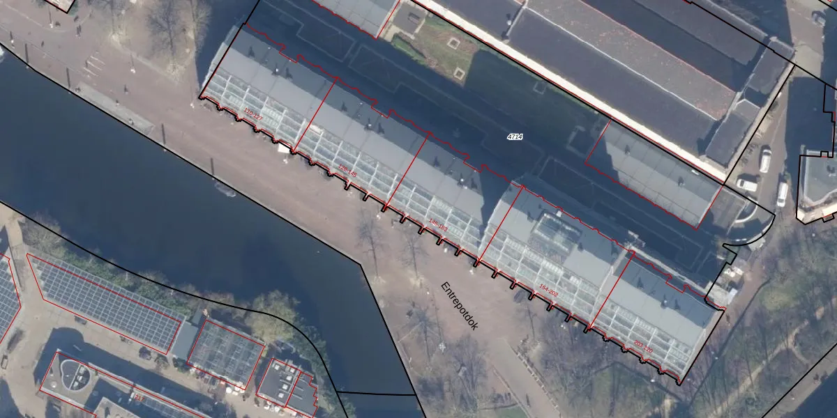 Het perceel waarop Entrepotdok 150 staat heeft een oppervlakte van 5978 m². Dit is een zeer groot perceel. De perceeloppervlakte wordt geregistreerd door het Kadaster. Gedetailleerde informatie over de maten van dit perceel kunt u vinden in het rapport Kadastrale kaart met maatvoering van Entrepotdok 150.