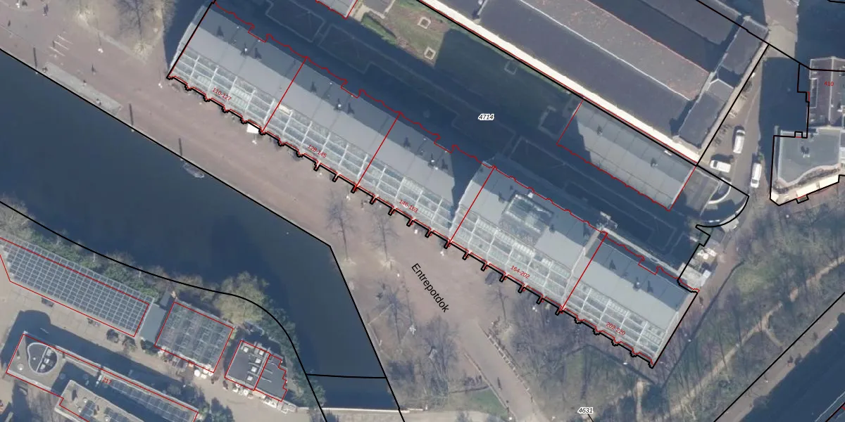 Het perceel waarop Entrepotdok 157 staat heeft een oppervlakte van 5978 m². Dit is een zeer groot perceel. De perceeloppervlakte wordt geregistreerd door het Kadaster. Gedetailleerde informatie over de maten van dit perceel kunt u vinden in het rapport Kadastrale kaart met maatvoering van Entrepotdok 157.