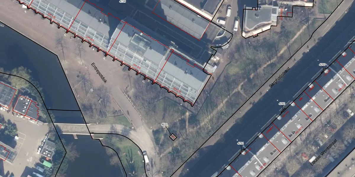 Het perceel waarop Entrepotdok 212 staat heeft een oppervlakte van 5978 m². Dit is een zeer groot perceel. De perceeloppervlakte wordt geregistreerd door het Kadaster. Gedetailleerde informatie over de maten van dit perceel kunt u vinden in het rapport Kadastrale kaart met maatvoering van Entrepotdok 212.