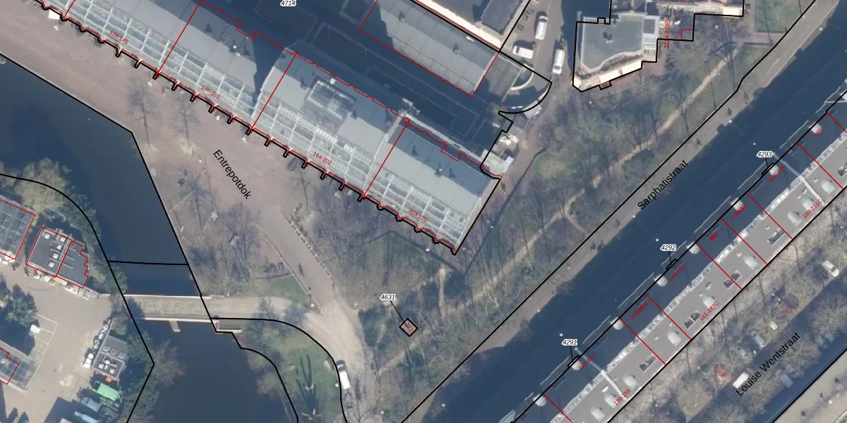 Het perceel waarop Entrepotdok 213 staat heeft een oppervlakte van 5978 m². Dit is een zeer groot perceel. De perceeloppervlakte wordt geregistreerd door het Kadaster. Gedetailleerde informatie over de maten van dit perceel kunt u vinden in het rapport Kadastrale kaart met maatvoering van Entrepotdok 213.